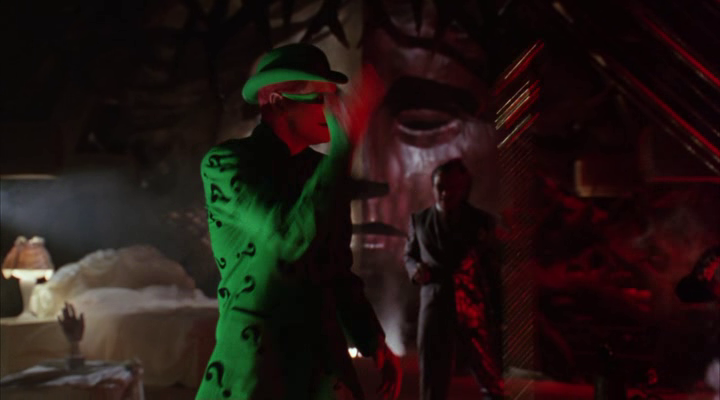 ATTORI: Val Kilmer: Bruce Wayne / Batman, Tommy Lee Jones: Harvey Dent / Due Facce, Jim Carrey: Edward Nigma / Enigmista, Nicole Kidman: Chase Meridian, Chris O'Donnell: Dick Grayson / Robin, Michael Gough: Alfred Pennyworth, Pat Hingle: James Gordon, Drew Barrymore: Sugar, Debi Mazar: Spice, René Auberjonois: dottor Burton, Joe Grifasi: Hawkins