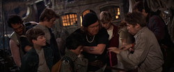 Cast: Sean Astin, Josh Brolin, Jeff Cohen, Corey Feldman, Kerry Green, Martha Plimpton, Jonathan Ke Quan, John Matuszak, Robert Davi, Joe Pantoliano, Anne Ramsey, Lupe Ontiveros, Mary Ellen Trainor, Keith Walker, Curtis Hanson, Steve Antin, Paul Tuerpe, Charles McDaniel, Elaine Cohen McMahon, Richard