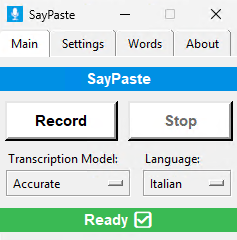 - Controlla SayPaste con tasti di scelta rapida globali o la semplice finestra di controllo.